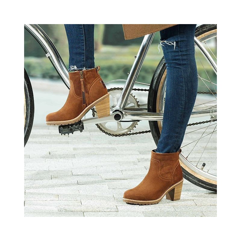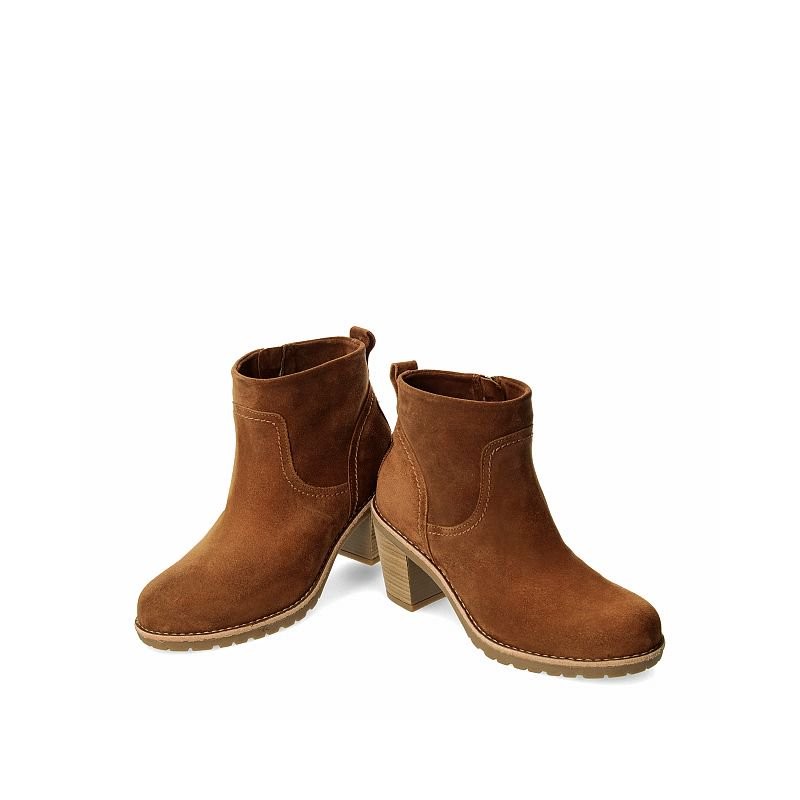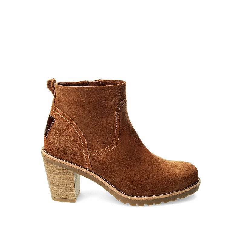 Botín estilo campero con cierre de cremallera realizado en piel velour y forro interior de pelo.