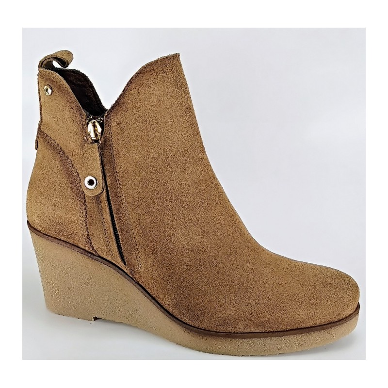 Botin con cuña en ante marron