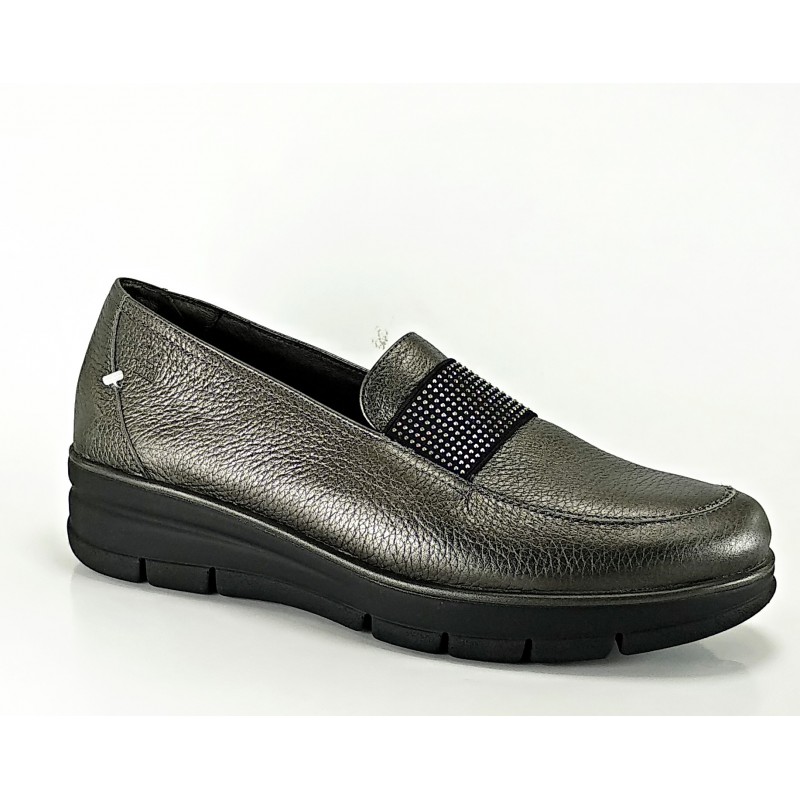 Mocasin en piel metalizada color plomo